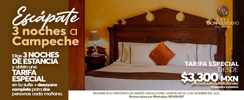 Escápate 3 noches a Campeche y hospédate en Casa Don Gustavo.